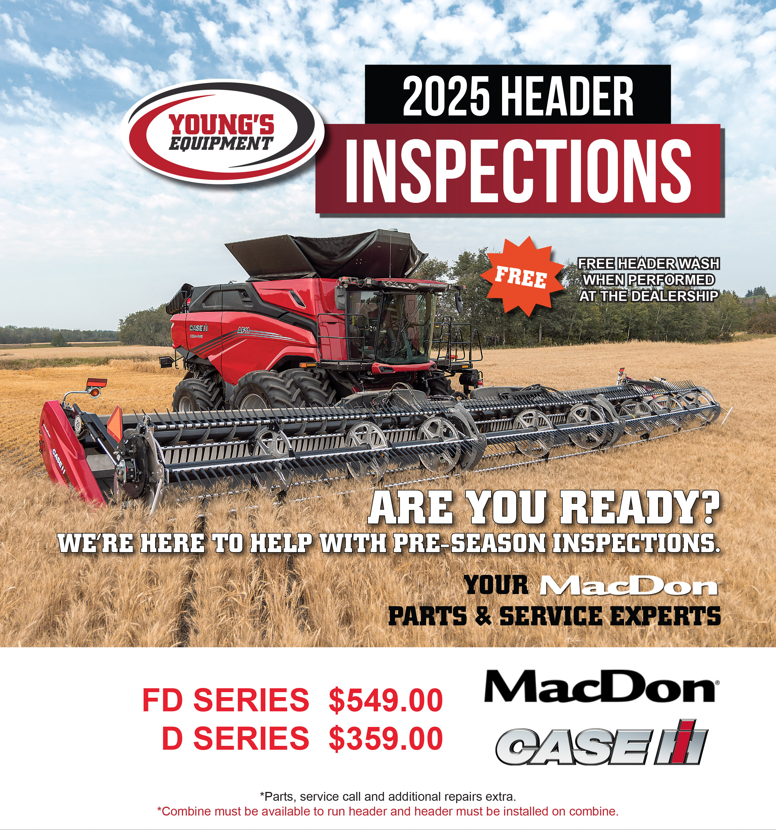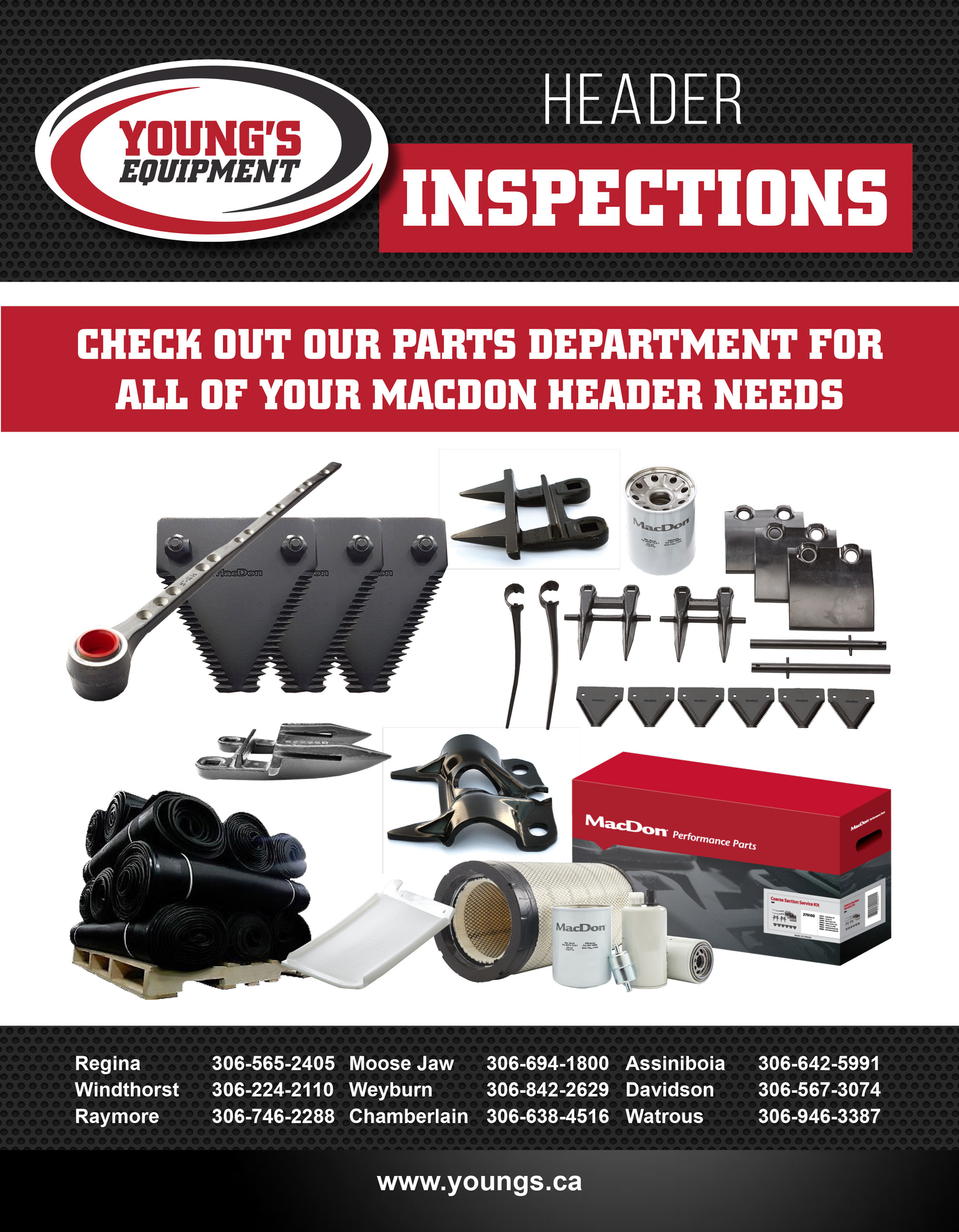 Give your local Young’s Equipment Service Department a call or visit us at any of our nine locations to learn more about what we can do for your header. Our Service Managers and Service Advisors will be happy to answer all your questions.